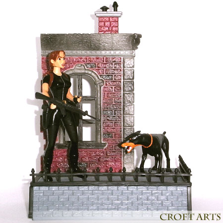 Besonderheiten: Lara kann Kopf, Arme und Beine bewegen, ist von der Base ablösbar, Gürtel mit den Holstern kann abgenommen werden; das Diorama kann zerlegt werden