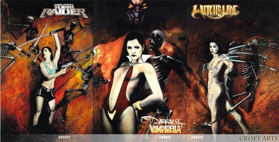 Die drei Triptychon-Cover von Erik Staub (Darkness/Vampirella Variant, Tomb Raider #33 Variant und Witchblade #48 Variant) ergeben zusammen ein Comic-Triptychon, also ein großes Gesamtbild.
